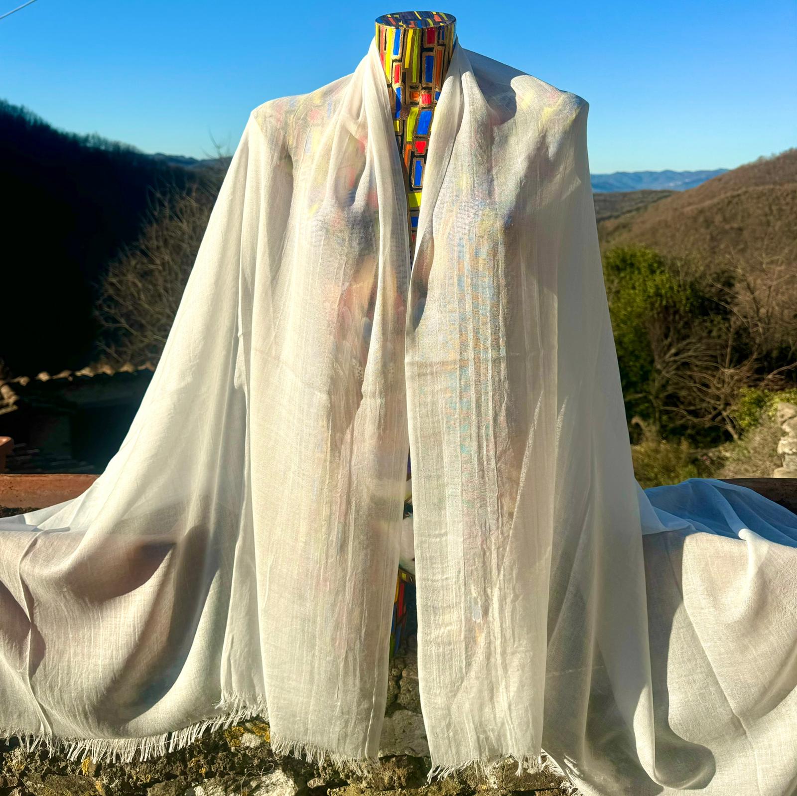 Just back from Milan and discovered these beautiful 100% PURE CASHMERE super sheer and lightweight shawls and wraps in five gorgeous colors ideal for cool Spring and Summer evenings. Such a great price for a Made in Italy pure cashmere accessory!