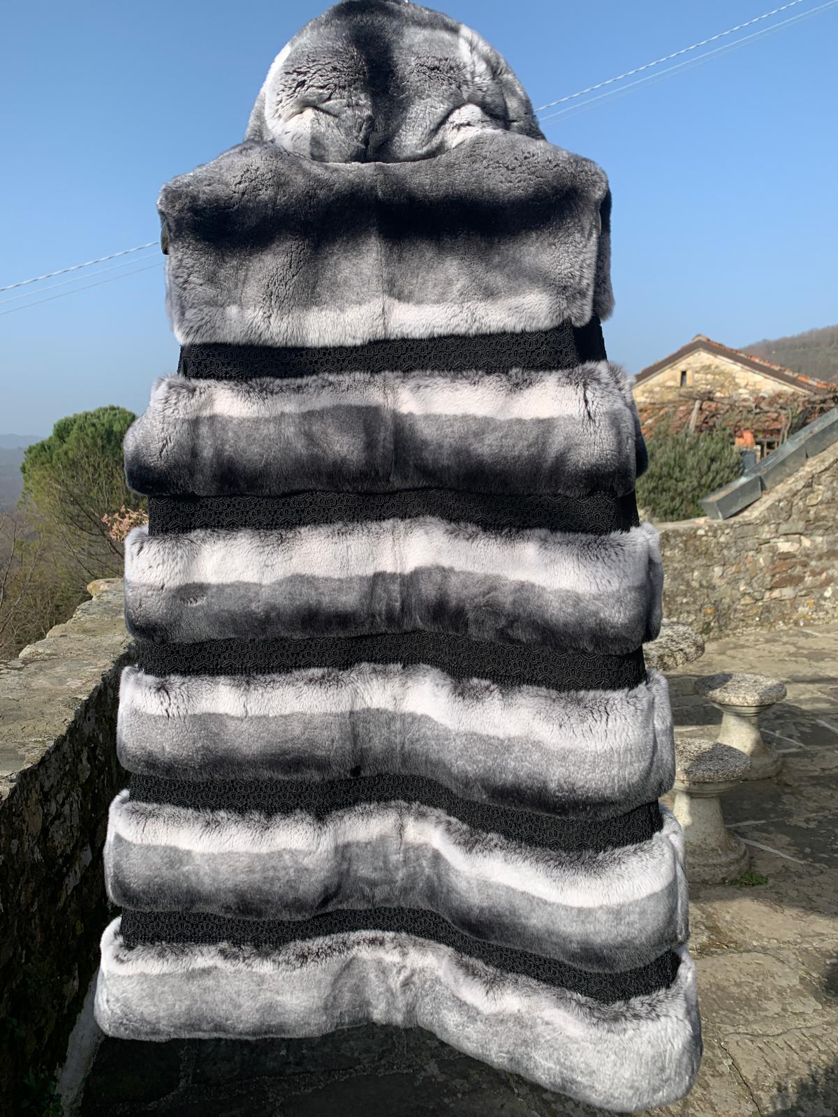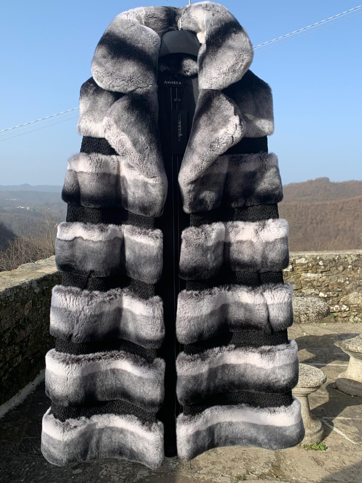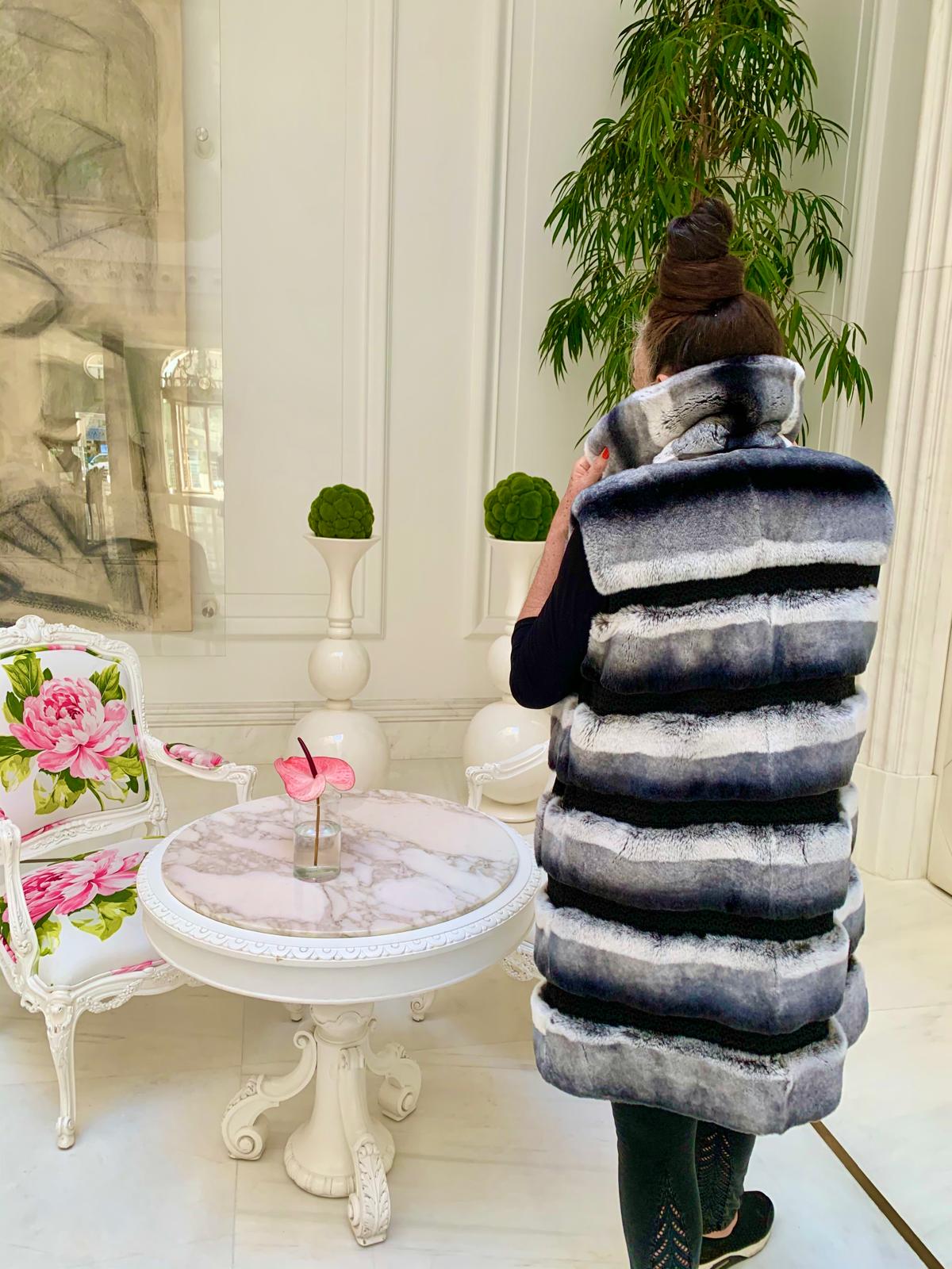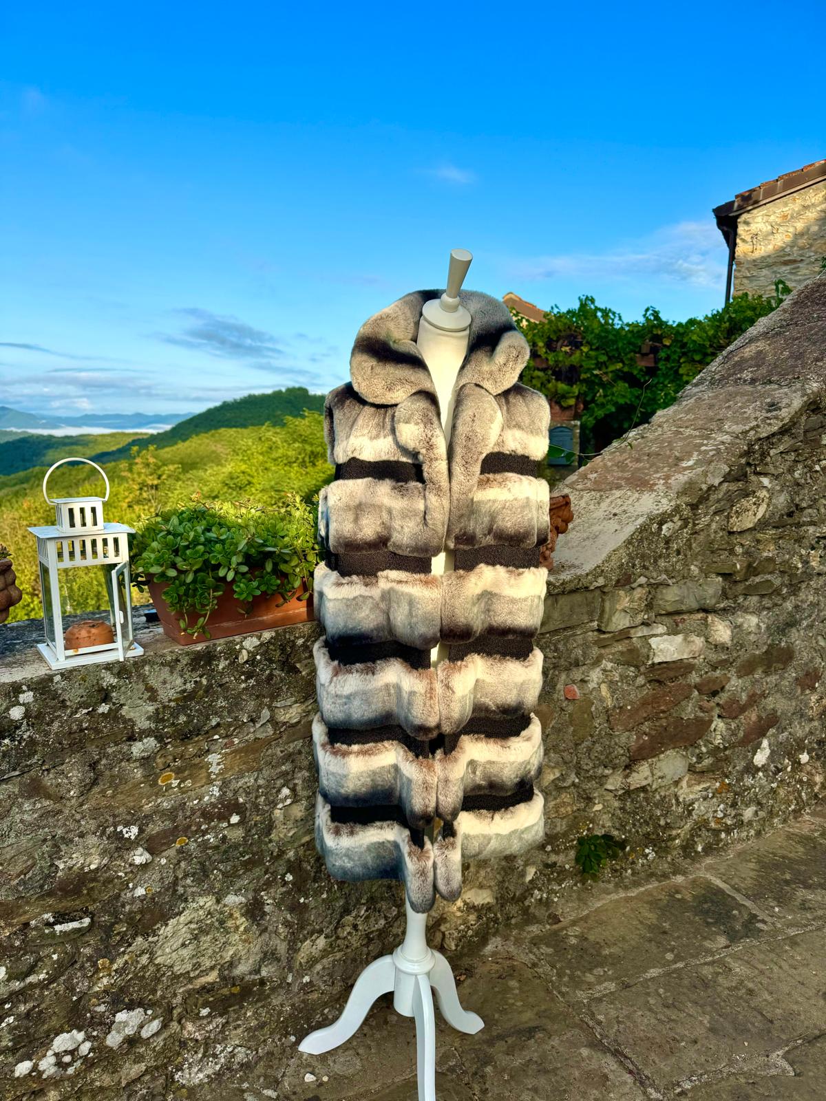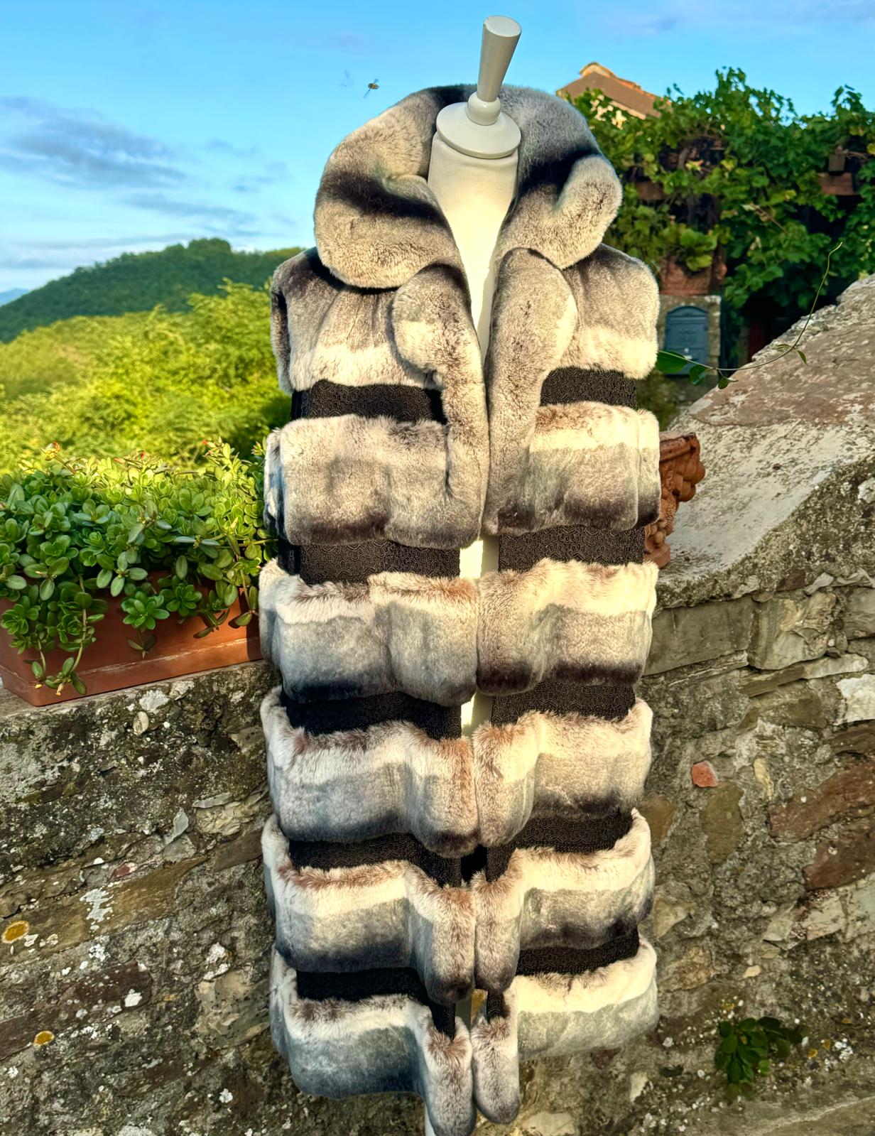 Experience Parisian elegance with this exclusively ours luxury faux fur knee-length gilet. Crafted in faux chinchilla, it boasts a super-soft, lightweight feel with a striking design that exudes sophistication. Exquisitely made and meticulously finished by our favorite Parisian designer known for their fabulously creative and one-of-a-kind creations. Available in size M-L.